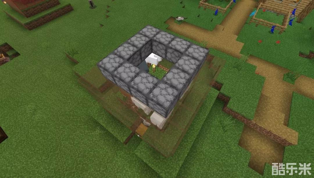 我们在羊的上方围一圈朝下的发射器,然后将中间用圆石封上。