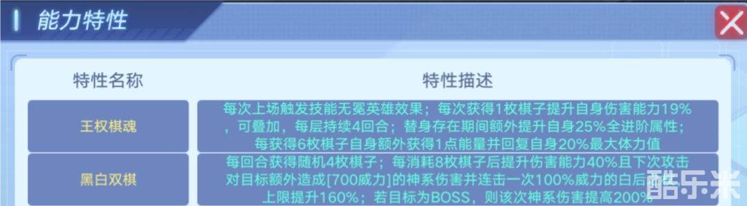 ⑵能力特性:王权棋魂/黑白双棋(两个都刷)