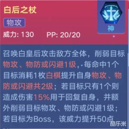③如果要用三技能提高伤害的话,最好是等黑棋多的时候再用。也可以用三技能可以免疫本回合的两次减益效果(包括减属,异常状态,也可以免疫魔神皇大招的重置属性效果,打魔神皇的时候,他要放大招,就用一个三技能,避免属性被重置)