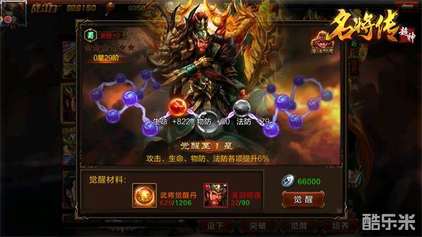 除了培养、突破外,武将还可以进行觉醒。玩家拥有一定数量的武将觉醒丹、武将魂魄、银两,就可以实现武将的觉醒。当武将觉醒至1星时,他的攻击、生命、物防、法防各项都会提升6%,从而让玩家的战力得到飞速的提升。