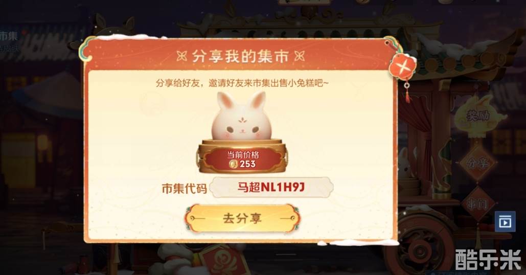 在小兔市集右下角找到“串门”,输入代码,前往其他玩家的市集。