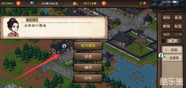 进入游戏,前往姑苏城布庄(15,25),与沈云芝对话,点击【初六快乐】触发任务。