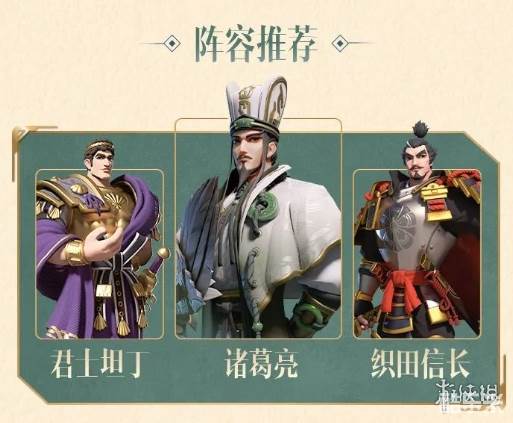 在君士坦丁的嘲讽下,为主将织田信长与副将诸葛亮提供了一个非常安全的保障;诸葛亮的[武侯北伐]使其在面对携带智力输出技能的队伍时,具备压制效果;最后,由织田信长打出伤害,压制敌方。
