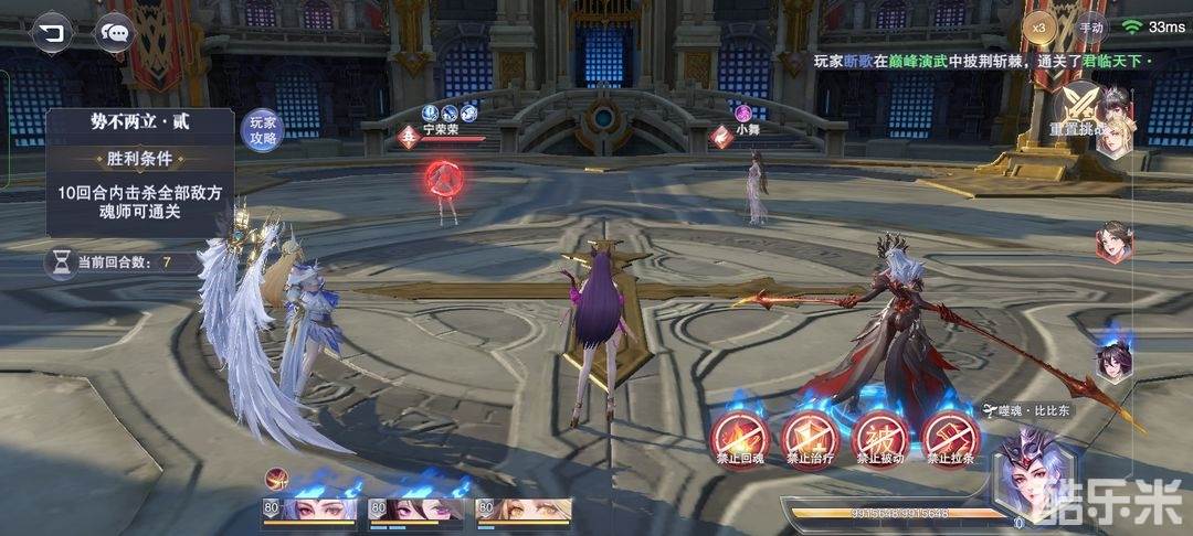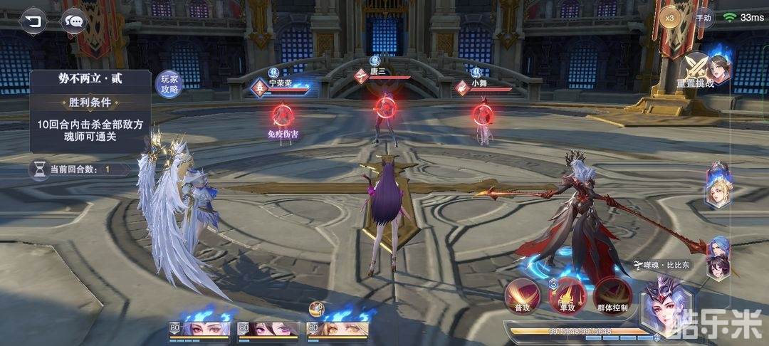 第二步,比比东第一魂技(魂技!不是普攻)打唐三/小舞。必须保证盾转移到小舞身上(最重要四步之二),没转移到直接退,重来。