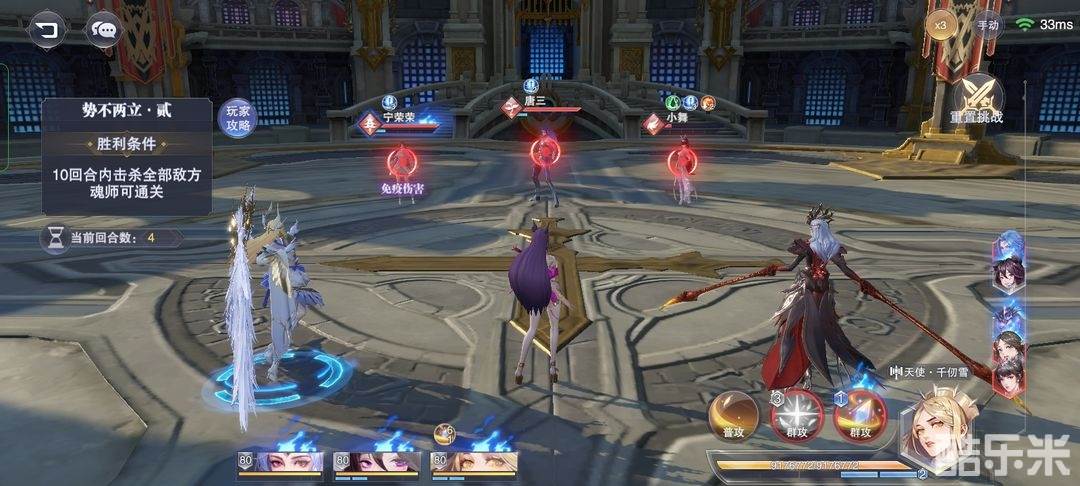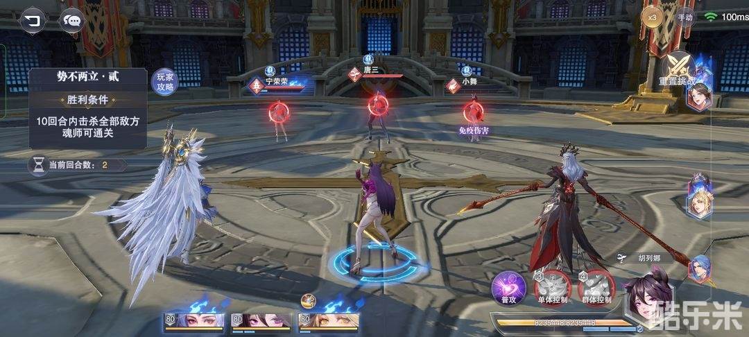 ②第二步若唐三回血,小舞残血,胡列娜普攻必须使唐三攻击小舞(胡列娜普攻吸引友方攻击),若普攻其他角色,退出重来;第二步若小舞回血,唐三残血,无所谓。