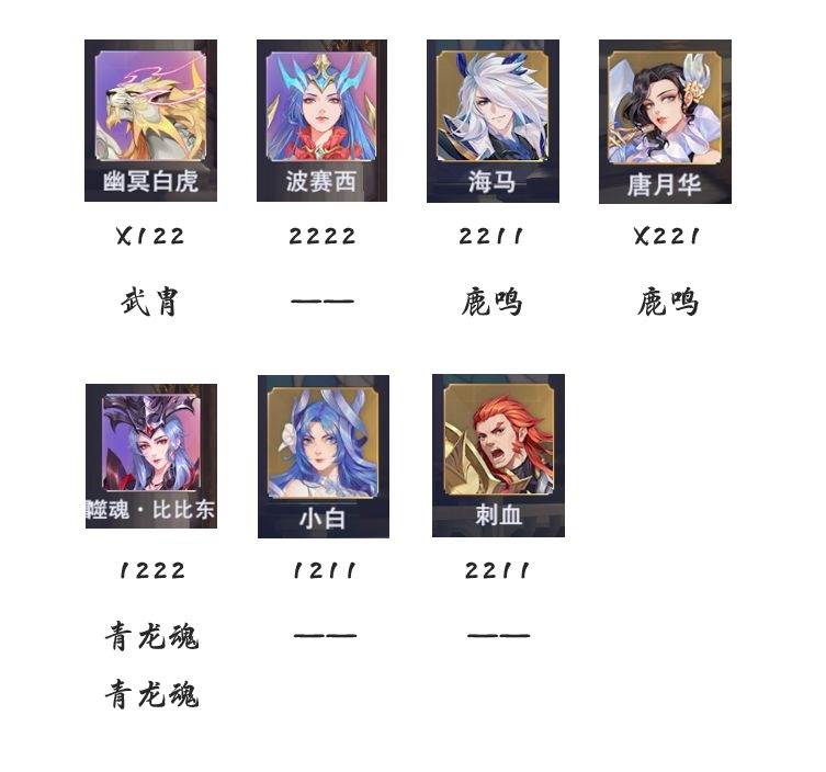 接着在辅助增伤位上,以上7位魂师是大家可以考虑的备选方案,其中幽冥白虎主要是以4技能为定向增伤,波赛西则是开海神领域和以海神祝福来增伤,海马则是以2技能的被动增伤和4技能的增伤为主,唐月华则是2技能的累积增伤,SP比比东大家都懂......就是主要靠圣谕增伤,小白则是靠幻境魂骨的加持,配合2技能与4技能进行增伤,最后刺血则是主要靠2技能被动进行增伤,那么在这几位当中,认为针对绝大部分玩家而言,必不可缺的有海马、波赛西和小白3位。