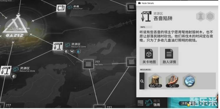 ①选一个会产出木头的资源区关卡(需要注意天气是否会不好部署干员)