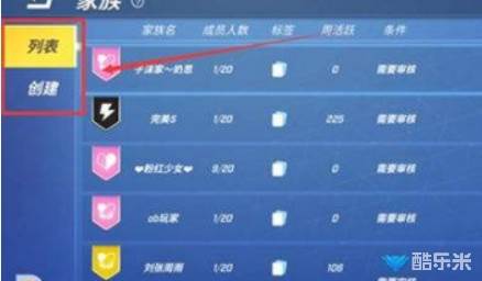 在左边有列表和创建两个选项,在列表中你可以选择加入家族。