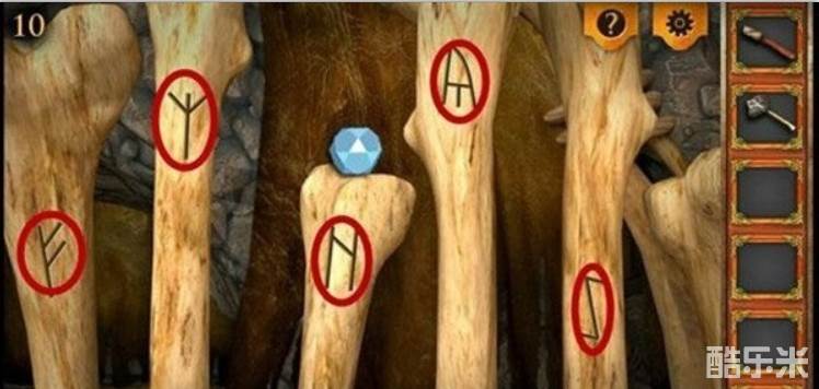 宝石放上后5根骨头上面的符号会逐个亮起,然后又熄灭。