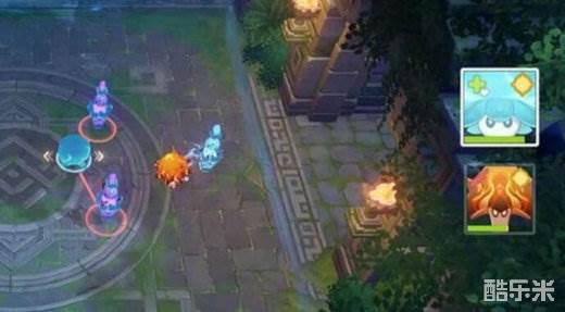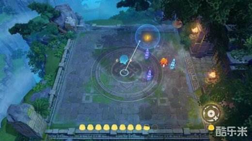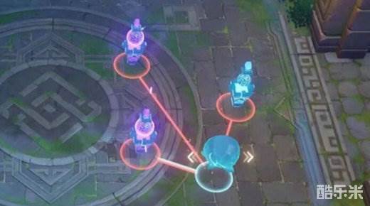 2、我方的「小小灵蕈」将自行选择最近的「棋阵机关]发起进攻,通过白色指示线,可以确认每个「小小灵蕈」的交战目标。