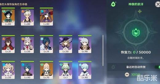 3、每一个七天神像的恢复力是有上限的,我们需要切换恢复的角色。
