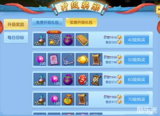 30级开始,每提升10级即可免费领取一份升级礼包。同时还有超值的“实惠升级礼包”可供购买,其中包含通灵符、通灵丹、元宵礼包多种限量道具。
