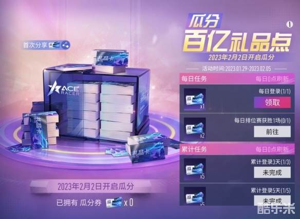 纪念币返利,投资赚金币正在火热进行中~接下来,让我们欢迎下一位“受益者”——百亿礼品点!“又双叒叕一次发家致富的好机会”,车手们可别错过。活动期间完成每日及累计任务积攒“瓜分券”,即可在规定时间内瓜分百亿礼品点大奖!人人有份,快来参与吧。