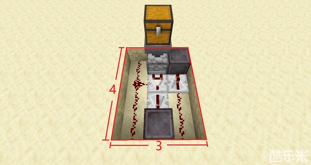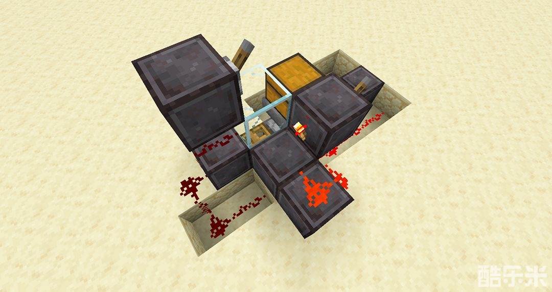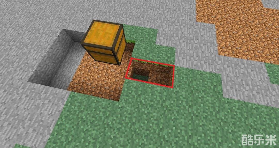 在箱子后方挖出1x2的空位,并如图其中一格向下挖深一格。