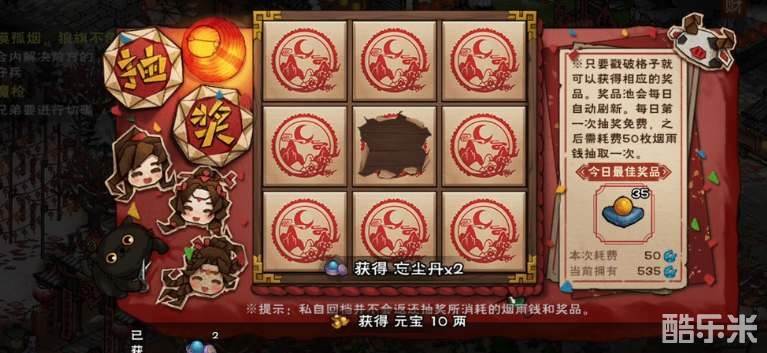 3、剩余的烟雨币可以拿来抽奖获取随机奖励。