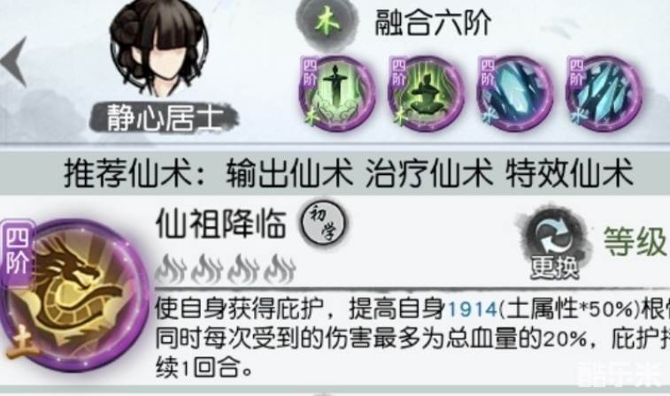 这里推荐玩家们一定要放置佛祖降临这个土属性的仙术,因为它的效果很强,可以在接下来的一回合内使玩家受到的伤害最多只有生命值的五分之一,可以很好的保护玩家不被秒杀!