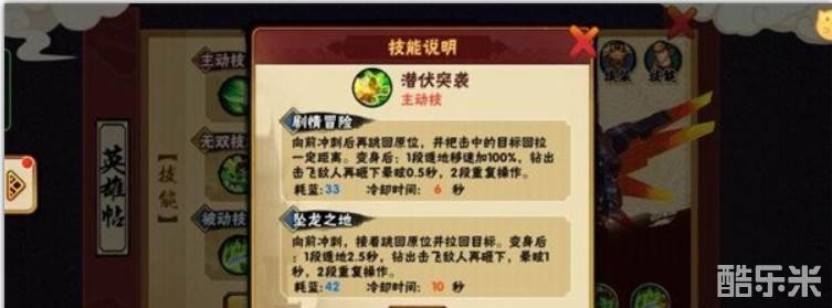 变身后,遁地加速100%可以现无伤追击,可以在敌人下面无伤消耗控制。二技能可以无双越塔,对面如果越塔也可以防止对面越塔,利用二技能和对方进行一个拉扯,实现塔下反杀。总之,二技能是一个进可攻,退可守的技能,有无敌,有加速的神技。无双技变身,怒气满释放变身兽形态,防御,攻击、移动增强,拥有新的攻击形态并使靠近的敌人中毒,中毒后持续3秒。