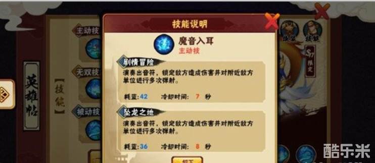 2、二技能(魔音入耳):演奏出音符锁定敌方造成伤害,并对附近敌方单位进行多次弹射。这个技能的话,只要对面的人越多伤害就会越高,所以量是在人多的地方释放二技能,尽量让技能伤害最大化。并且二技能有控制,是前期追击时的不二技能