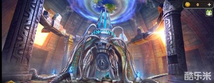 往外走,你拿到的蓝药瓶要放到右边雕像的手里,这样会折射出左侧神台的解密游戏。马赛克是小游戏缺失的部 分