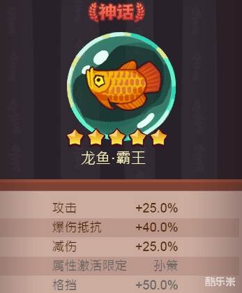 解析:在鱼灵方面肯定是没有比专属更合适的,50%的自带格挡,25% 的减伤值,以及40% 的爆伤抵抗,简直是量身定做的。