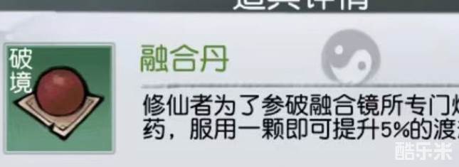 讲述了融合丹怎么获取,小编再给小伙伴们简单科普一下融合丹的使用方法,要知道修仙者为了参破融合镜所专门炼制的丹药,服用一颗即可提升5%的渡劫成功率,使用方法非常简单,玩家只需要点击背包,找到融合丹进行使用就可以了。