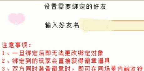 玩家获得戒指之后,戒指可以绑定赠送的好友,一旦绑定之后就无法更换绑定对象啦。同时双方拥有互相赠送的徽章到达同一场景中的时候就能够触发全图特效,整体的画面看起来真的唯美极了。