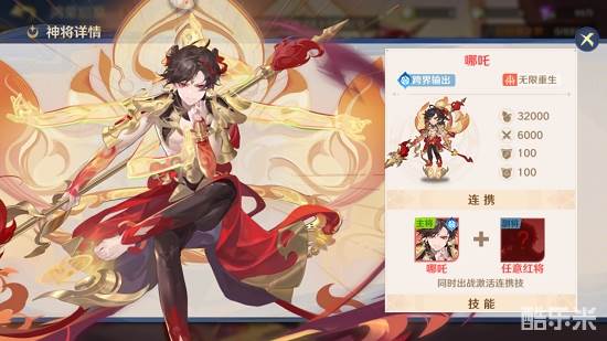 作为天庭“伏魔大元帅”,哪吒天生具有神魔双生之力,后于红莲之中浴火重生,有着超越众人的强大实力!在《自在西游》中,哪吒具有跨界天赋“[心领神会]”,赋予其搭配任意红将皆可激活连携,并在任意配队中转化为主角阵营的能力,成为首位“跨阵营”神将,打破羁绊连携限制,提供了配队的无限种可能。各位守护使快与哪吒一起,以红莲业火燃尽世间万物,享受爽快与谋略并存的体验!