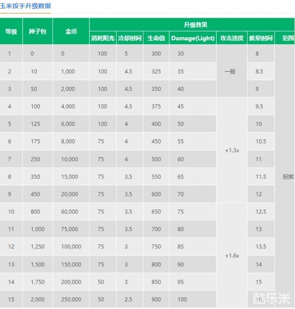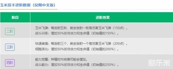 2.攻击时有20%概率发射黄油。两个横排紧挨着的玉米投手可以一同升级为一个玉米大炮。