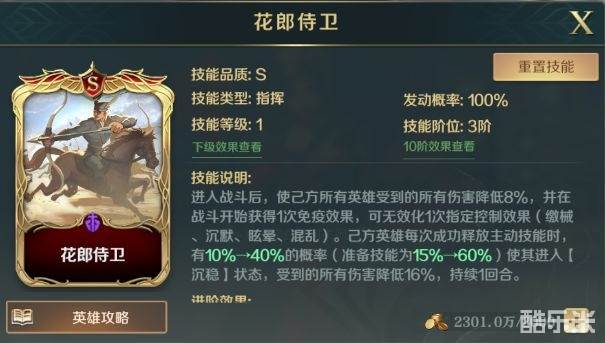 以善德女王为例,其自带技能【花郎侍卫】可以为我方英雄提供伤害减免、沉稳等效果,配合【伊比利亚联盟】的减伤,可以大幅度提高队伍的生存能力,而善德女王并不需要承担输出的任务,因此技能的负面效果可以被完美地规避。