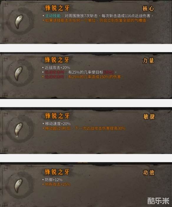 2、放置在力量槽可以增加近战伤害和流血效果。