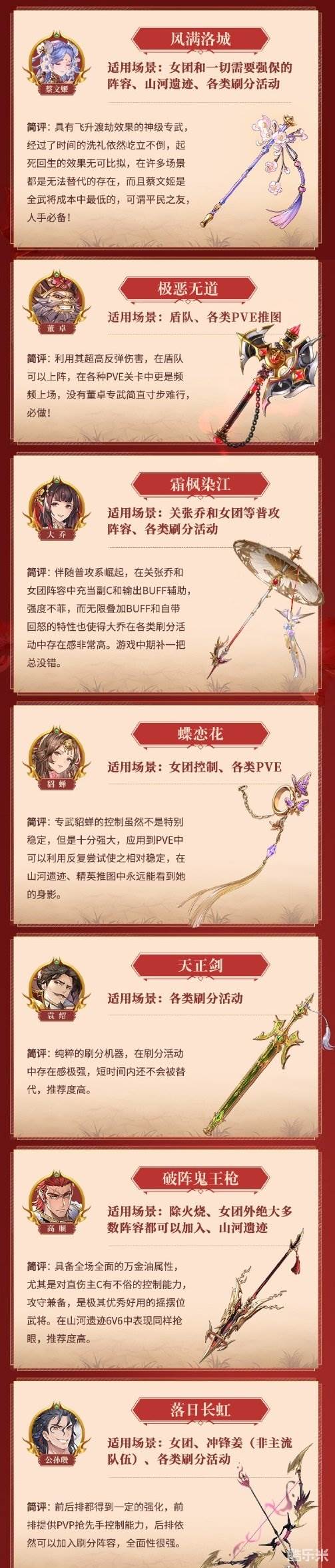 4、PVP向的专武推荐指数因人而异,根据主力阵容不同存在很大差距,因此即使是单一阵容必备的专武也不会有特别高的评分,但是你仍然必须拥有它才能玩特定阵容。