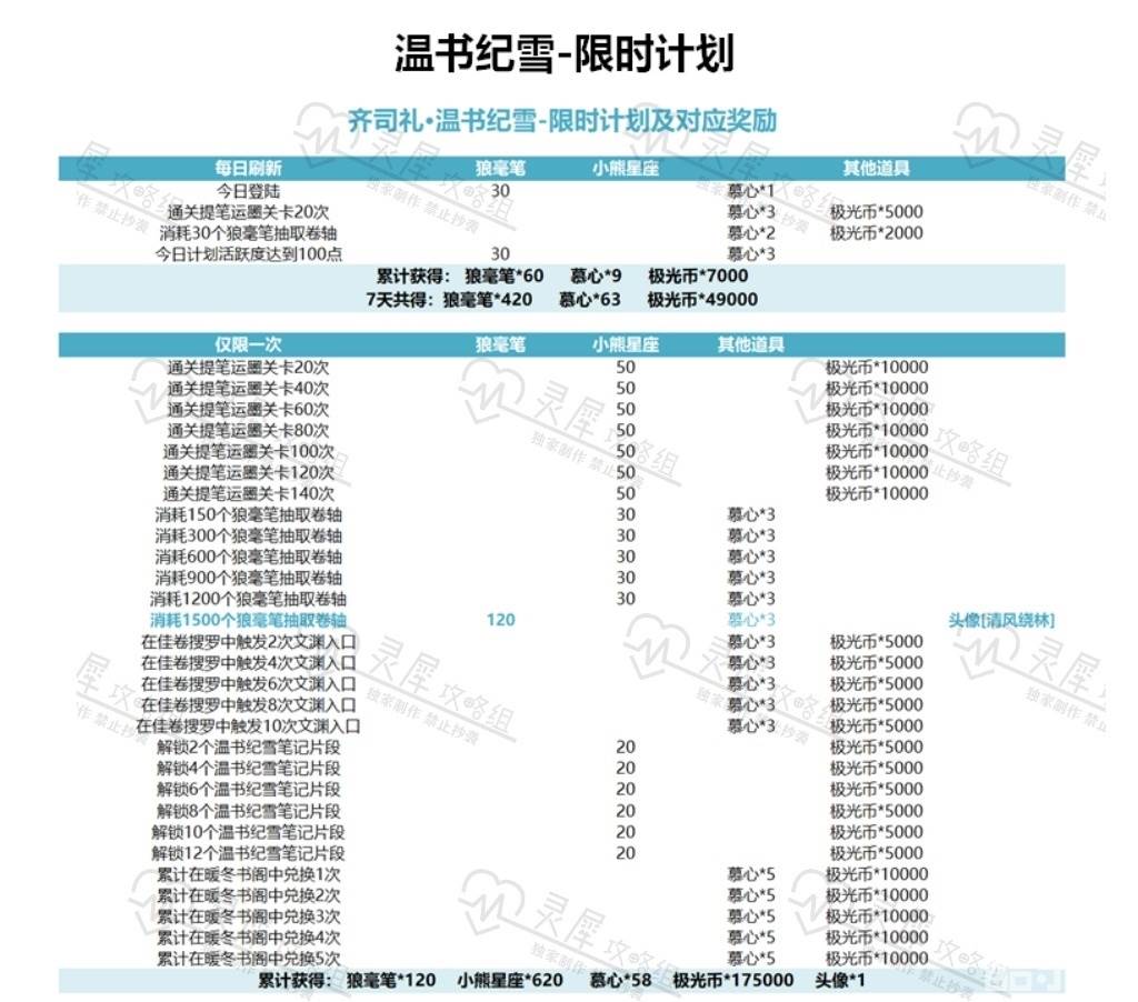 集齐每本书的4段[秉烛夜话],可以进入读书心得[玄笔梦谈]并获得小熊星座X100,集齐全部12段[秉烛夜话],即可领取[5星]灵犀 齐司礼·光阴漫语。