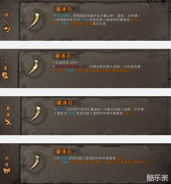 尖刺对[冻结]状态的敌人造成的所有伤害提高200%。