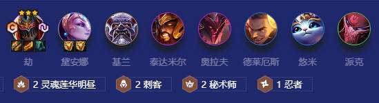 存到50金币,再拉人口,3-2可上6人口,选秀后大搜找两星“劫”和【4明昼】,锁血后,慢搜三星“劫”。