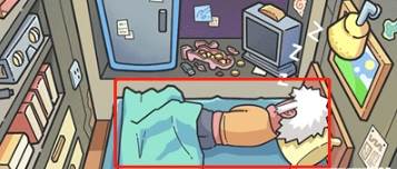 1、点击男孩他就会翻身我们就可以获取他床上的卡片。