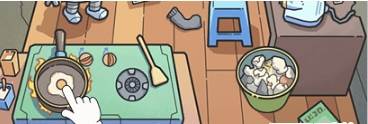 3、最后点击冰箱就可以获得鸡蛋然后将鸡蛋放到平底锅上就可以获得荷包蛋。