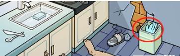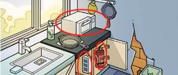 6、先点开右下角的柜子将微波炉的电拔掉,再使用灭火器灭火就能获得微波炉。
