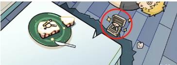 4、使用小刀将桌子上的蛋糕切开就可以获得钻戒,将钻戒放到戒指盒中。