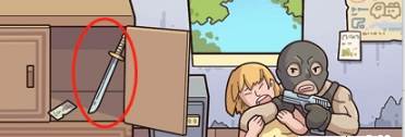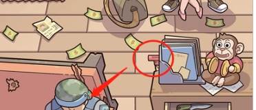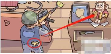 8、将警察裤子口袋的发条给玩具猴子,猴子就会开始动,坏人就会把枪丢掉。