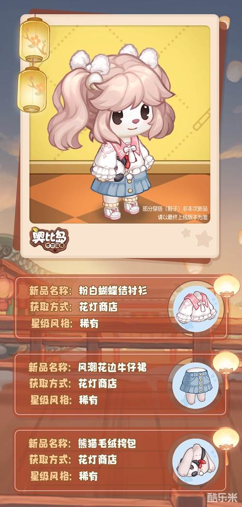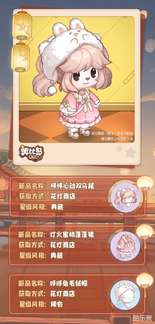 花灯寄语,燃灯祈愿。在奥比岛迎接热闹的花灯节之际,奥比岛手游发布了「花灯节」新品发布会。 2月2日更新后,【宵灯小店】限时上架「灯火蜜桃蓬蓬裙、灯火祥云背带裤」等精美时装,还有「金兔闹春、游园梦鲤」等花灯主题家具,可前往【宵灯小店】进行购买。