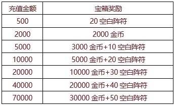 【活动内容】金币奖励满额返还,额外赠送大量空白阵符,天地水火,风雷山泽,奇门阵符,尽收囊中,一切尽在本期月末超值大放送。