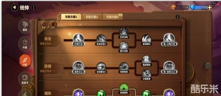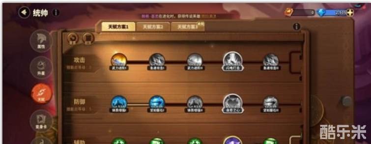玩家们可以根据自己英雄的强度进行加点,有防御、攻击、辅助三个天赋支线,例如凯撒属于战士,可以加点攻击、防御。