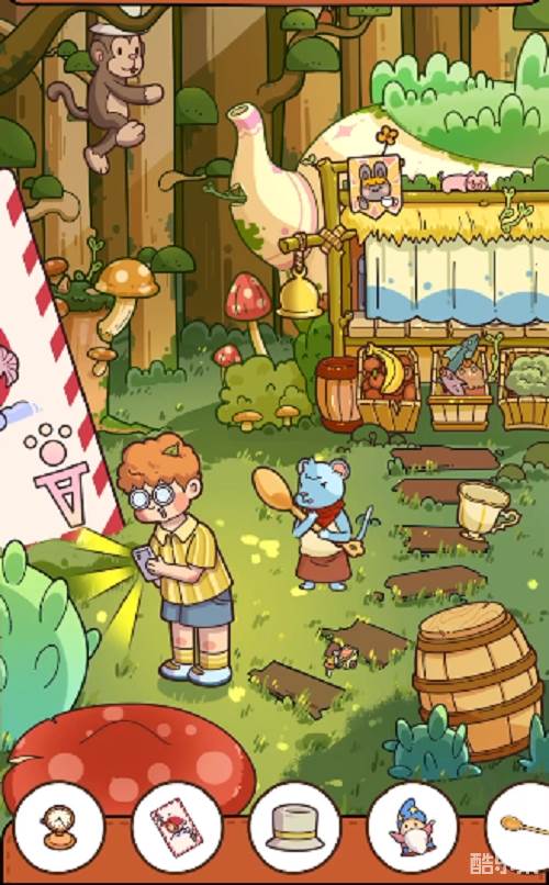 7、点铃铛,左侧树上的蘑菇给兔子得到蘑菇瓶子。