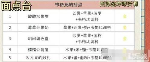 2.喜好:韦格比的甜点系列任意1道。