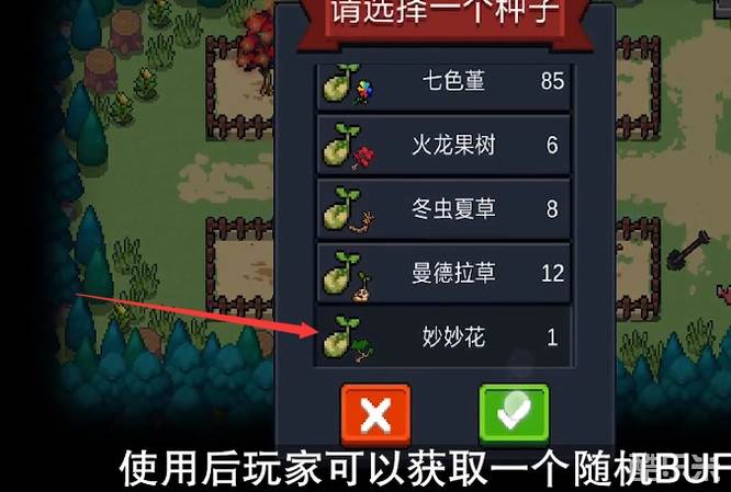 2、妙妙花尽管是农作物,每天只能成熟一次,每次也只能带给玩家一个天赋,但这却是玩家三持兵器下地牢的确保,咱们必需得有一枚妙妙花种子,最简单获得它的办法,是刷车间的神秘商人了,玩家可以借助云存档,一旦没刷到妙妙花,就立刻重新读取存档,再重新刷1次,直到刷到妙妙花为止。