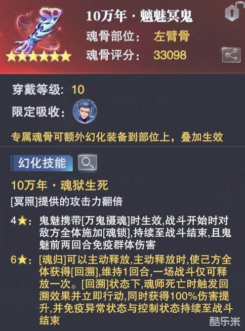 最后针对6星的可主动使用【魂归】的效果,其目前的测试结论如下: