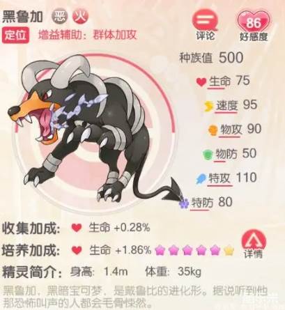 口袋觉醒黑鲁加怎么样值得培养吗很多人还不知道,这是口袋精灵的一只非常强力的S级精灵他的属性和各方面评价,那么感兴趣的玩家就快来看看吧。