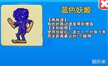 4、蓝色妖姬技能:使用技能后,派出分身飞奔带走距离最近的一个植物