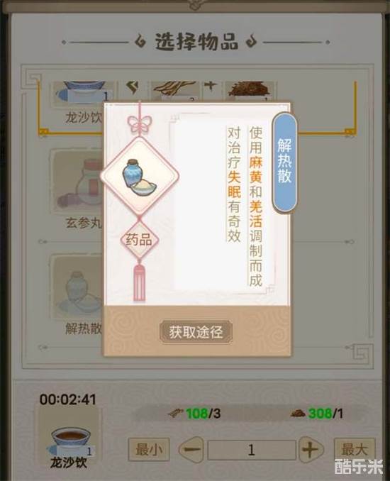 3、解热散需要等级22级后才能解锁,制作材料是麻黄和羌活。