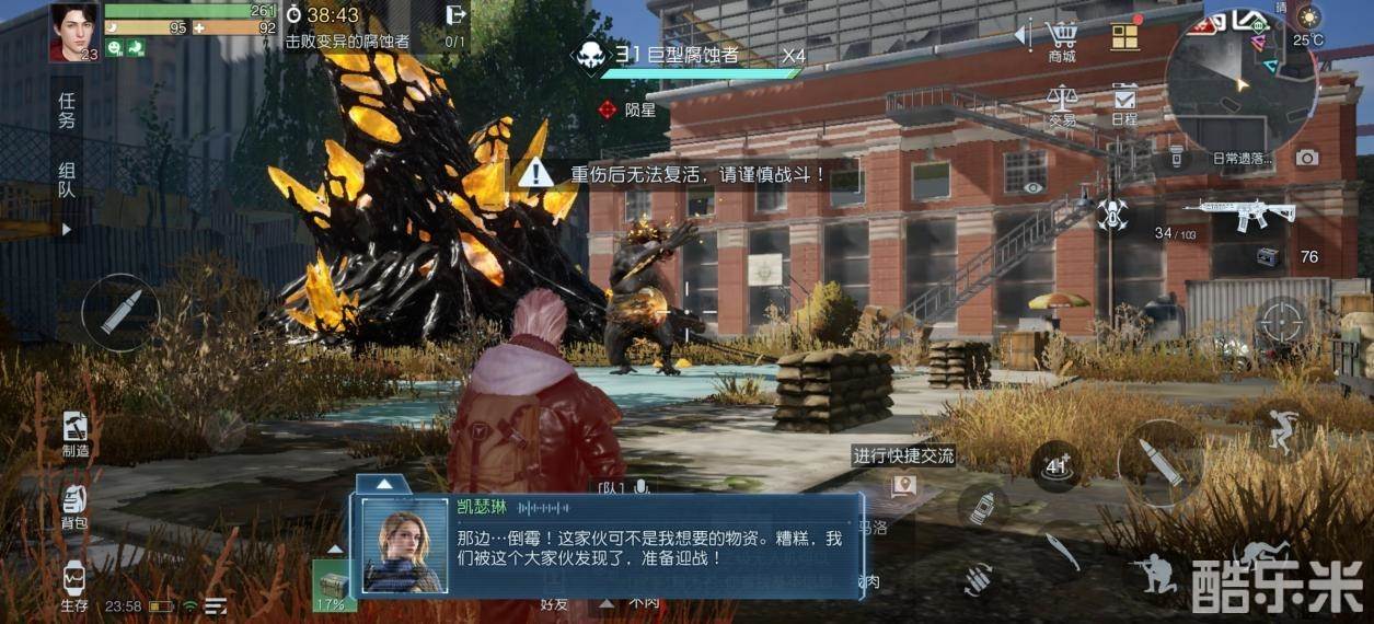 由于遗落之城为入门副本,所以大多数幸存者都还没有足够高的护甲抵御BOSS的攻击,不过好在遗落之城难度整体较低,变异者的攻击方式比较一致,只要注意得当即可闪避,只要不贪刀基本不会暴毙。另外,虽然BOSS拥有远程攻击的能力,但是伤害远不及近战,未能及时闪避的幸存者只需要绑个绷带就能维持生存。